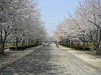Long sidewalk with cherry trees Kashiwanoha, Kashiwa-shi
