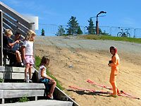 In the silent forest, I have visited the schanze by bicycle. The Norwegian team was practicing in the hot weather.