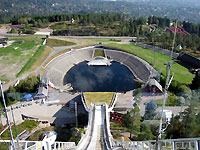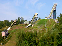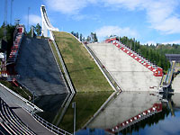 Modern schanze designed by Zaha Hadid. A view restaurant is attached on the top near the starting gate.