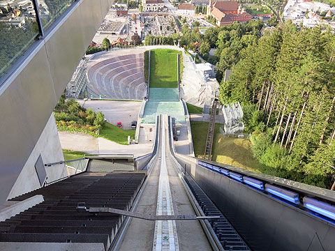 Most beautiful and historical schanze in the world. A ski museum is attached with a lift to the top of the slide.