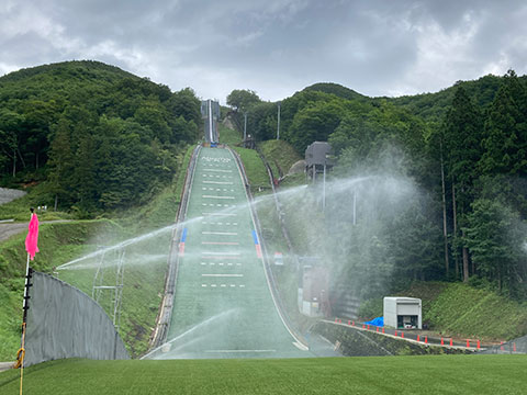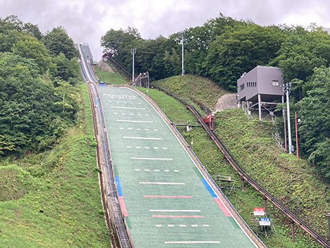 Holy schanze in Japan. The winter sport museum attached has a ski jumping simulator.