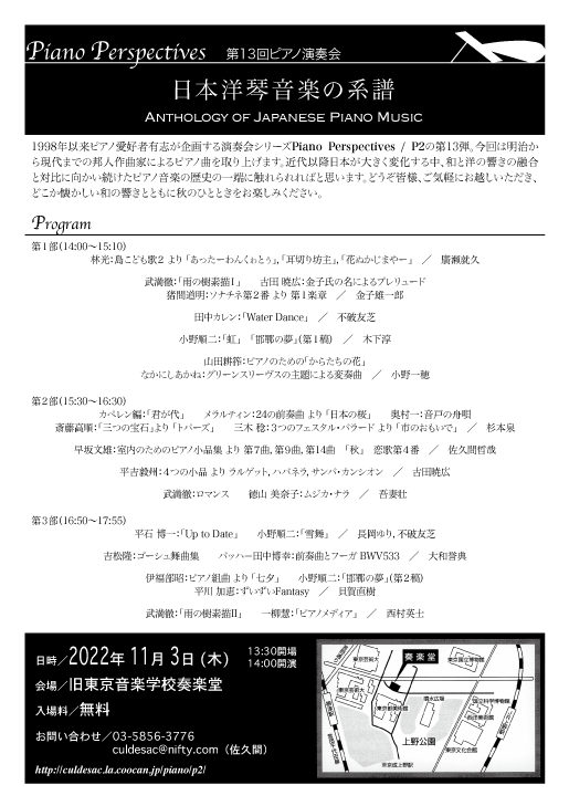 2022年11月3日(木)14:00開演 旧東京音楽学校奏楽堂