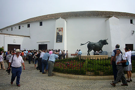 実を言うとロンダに一泊する予定を組んでいたのですが、町中を探してもどうしてもこの日だけ宿が見つかりませんでした。偶然にも年に一度の闘牛祭に重なってしまい、仕方なく午後には町を後にしましたが、祭の雰囲気だけでも垣間見ることができたのは幸いです。当然ながら闘牛場もセビーリャやマラガなどの大都市とは違ってこじんまりとしているので収容人数がかなり限られます。ロンダの町を満喫するには予め闘牛の日程を確認の上でチケットを予約し、それを楽しみに前夜からゆっくりと、いや「ロンデーニャ」のファンダンゴ風に情熱的な夜を過ごすのが良さそうです。