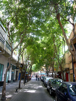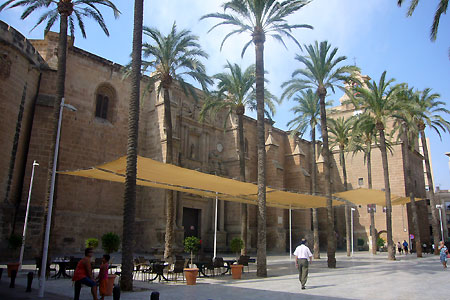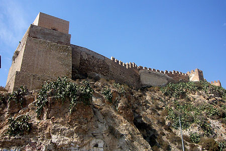 最後の岩山を下り始めると眼下にアルメリアの港が見えてきました。市街地に入るとアラビア語の看板が多く目に留まるようになり、赤茶けた石積みの建物、大通りに立ち並ぶ椰子の木、街の背後に広がる岩山からも北アフリカが強く連想されます。旧市街はカテドラルを中心に小さな範囲に広がっていて、そのすぐ裏の丘の上にはアルカサバ(城塞)がひかえていました。イスラム建築としてはスペインで二番目の規模を誇るそうですが、強い日差しを浴びて乾ききった岩の丘に横たわる無骨な外観にグラナダのアルハンブラのような華麗さは見られません。