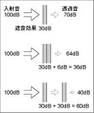 (1)防音と遮音 ふだん「遮音」よりも「防音」という言葉の方をよく耳にするだろう。「防音」は壁や窓で音を遮断する「遮音」に加えて、室内を吸音したり、壁や床の振動を起きにくくすることで、遮断するより前の音や振動を小さくすることも含む。つまり、「防音」の方がより広い意味で使われている。 (2)二重の壁の遮音効果 30dBの遮音効果をもつ壁、あるいは窓が2枚あるとしよう。2枚を重ね合わせた場合、その遮音効果は36dBにしかならない。これが、1枚あたり40dBの遮音効果をもつ壁の場合でも46dB、一般に同じ厚さの壁を2枚重ねても6dBしか効果は上がらない。一方、2枚の壁の間隔をあけて空気層を挟んだ場合、遮音効果は30dBプラス30dBで60dBとなり、断然効果は高くなる。ただし、これは壁の間隔が十分に大きい場合の話である。例えば、二重サッシで2枚のガラスの間隔が狭い場合には、それほど効果は上がらないか、音の周波数によっては悪くなることがあるので、注意をしなければならない。 | ||||||||||