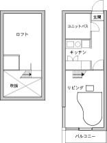 遮音構造については、コンクリートの床と壁の厚さを200mmと相当しっかりと確保した上で、浮き床、浮き壁を設けることにより、60dB以上の高い遮音効果を実現している。その他、給排水の配管に遮音シートを巻いたり、吸気口に消音器を用いたり、建物設備から発生する騒音も極力低減するように努めている。ただし、窓のサッシについては、あえてサッシの性能を高めすぎないようにしているようだ。周辺が商業地域なので、少しくらいの音が外で聞こえたとしても問題にならないことと、仮に屋外の音を完全に聞こえないようにすると、わずかなマンション内の音でも気になりやすくなるためであろう。 10階建てのこのマンションには、ワンルームタイプ4種類とメゾネットタイプ2種類が用意されていて、ガラス張りのバスルーム、白を基調とした水回り、ステンレス製キッチンなど、ディテールへのこだわりが、室内全体にすっきりとした印象を与えている。メゾネットタイプの2種類は、上下方向の断面で見ると、L字と逆L字がちょうど重ねられたような形で、片方はロフト付き、もう片方は下階に水回りだけをまとめた構造となっている。 音楽専用マンションの可能性