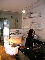 実際に新海さんのお部屋に案内していただくと、10畳程度のリビング部分には、ピアノ(KAWAI RX-2EU)、ベッド、小さなテーブルと椅子2脚がぴったりと収まっているが、床面積の割には窮屈に感じない。洗面台やトイレのあるパウダールームがガラスで囲われていることで、リビング部分との視覚的な連続性を確保しているからであろう。さらに、ロールカーテン、ベッド、椅子や棚など、新海さんのインテリアの趣味で白に統一されて、それが部屋によくマッチしているので、なおさらすっきりとして見える。新海さんが、この部屋に愛着とこだわりを持って住まわれている様子がよくうかがえる。 「ミュージション」を管理した、住宅供給会社(株)リブランの井福さんにお話をうかがうと、居住者のほとんどが20代後半から30代にかけての音楽関係者で、予想以上に音大生以外の方からの申し込みが多かったそうである。ピアノに限らず、音楽にかかわる人は相当多くいるはずで、こうした遮音マンションの需要は奥が深いように思われる。これまでの不動産広告では、「ピアノ可」は「ペット可」などと同じレベルで表示され、その遮音性能にもずいぶんと格差があったため、部屋探しにはつねに不安がつきものとなっていた。しかし、このマンションのように、徹底した防音対策を施しつつ、音楽専用のコンセプトを全面に押し出した物件が、今後は幅広く都心に現れることを期待したい。